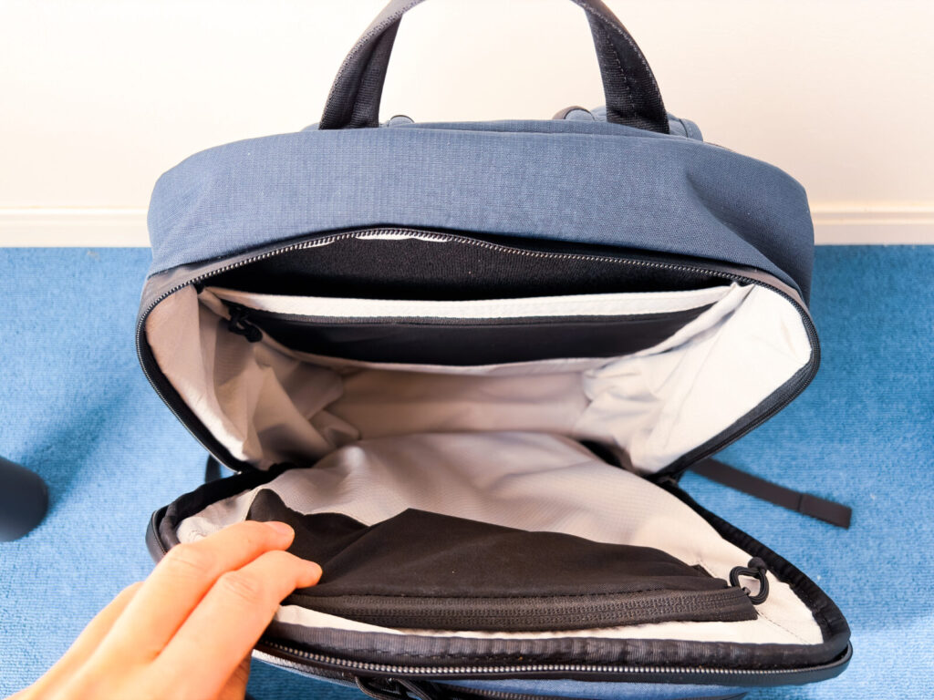 その点、BRAVO BACKPACKのオーガナイザーはとてもシンプル。必要な小物はきちんと整理できる一方で、収納構造が複雑すぎないため直感的に使えます。