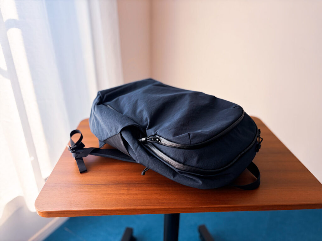 「うーん、ミニマルデザインと機能性を完璧に両立するのはやはり難しいのかもしれない…」と感じていた矢先、とあるバックパックに出会いました。