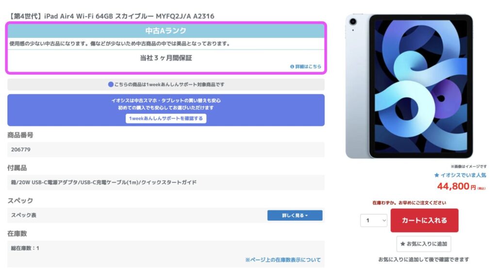 そんなときにチラッと目に入るのが、中古のiPad。
