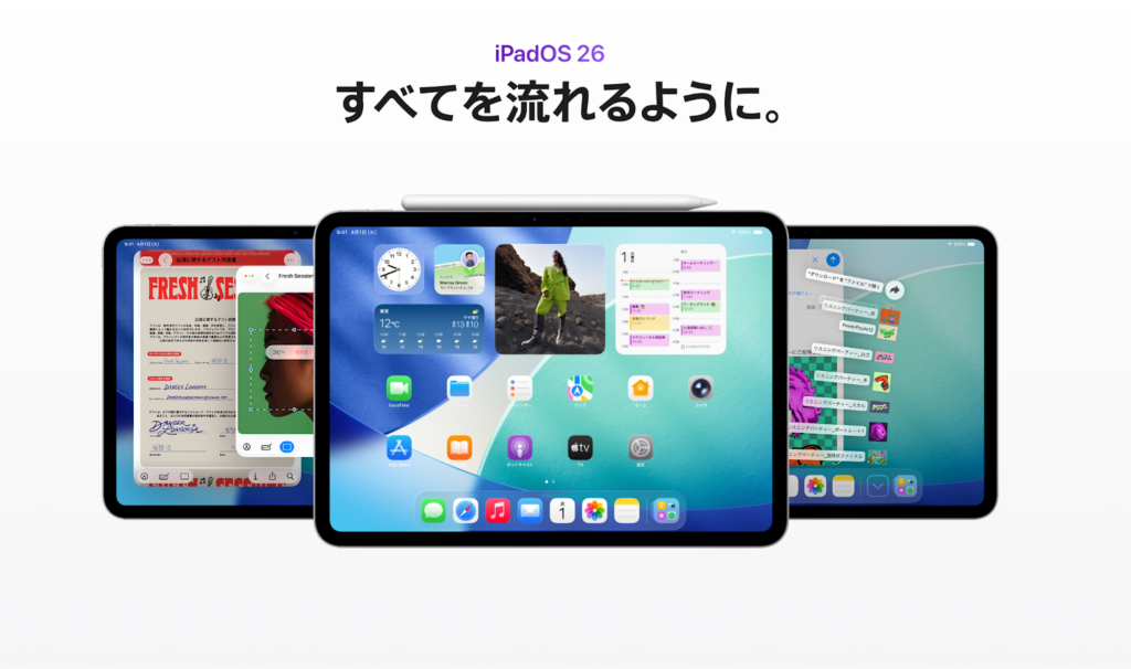 2025年秋リリースの「iPadOS 26」に対応しているモデルを見ても、2019年発売のiPad Air(第3世代)まで対応しています。