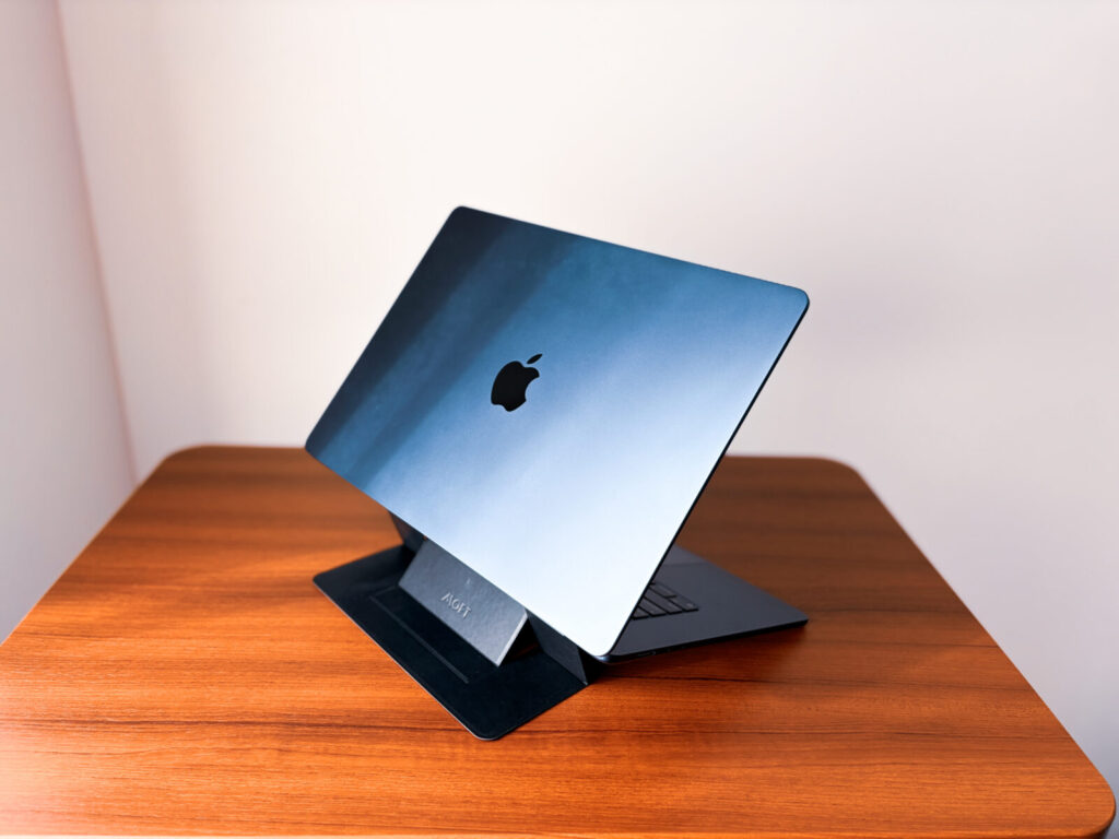 ちなみに、裏面には肩こりやストレートネックを防ぐために、MOFTのノートパソコンスタンドを貼り付けています。